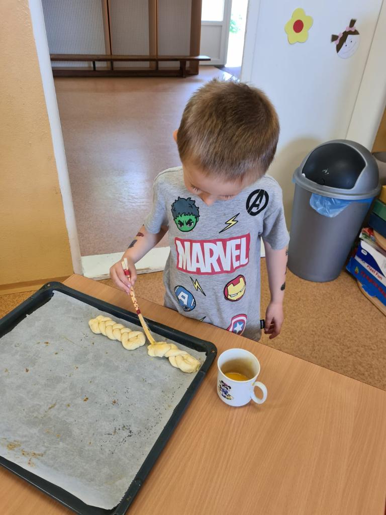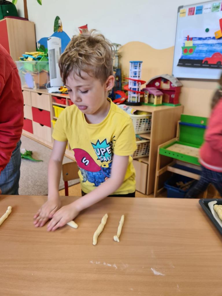 Děti si vyzkoušely zaměstnání pekaře a společně jsme si upekly krásně křupavé a voňavé housky a rohlíky